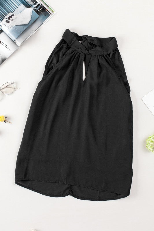 Solid Keyhole Halter Neck Sleeveless Tank Top