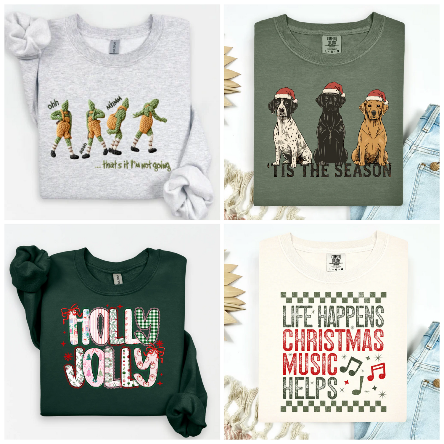 Shop fun and festive graphic tees and sweatshirts, including Grinch-y looks and the new faux yarn prints!