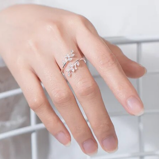 Crystal Leaf Wrap Ring