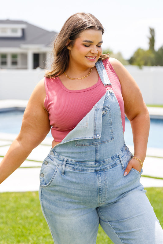 Daily Essential Notched Ribbed Tank in Pink