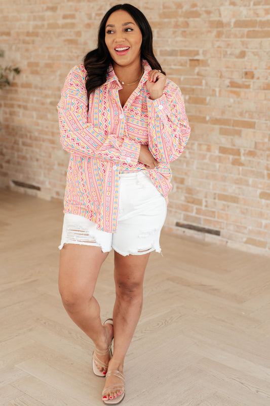 Hot & Unbothered Full Front Button Down Shacket in Pink
