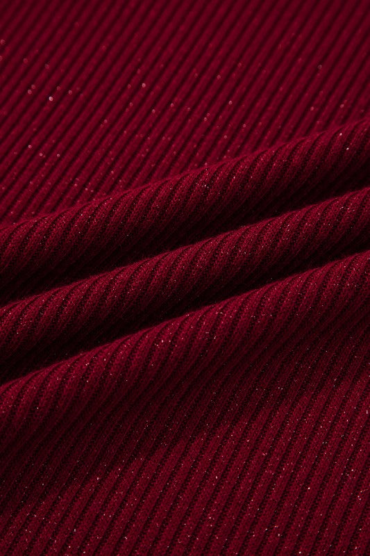 Balloon Sleeve Oversized Ribbed Top with Floral Pattern Contrast