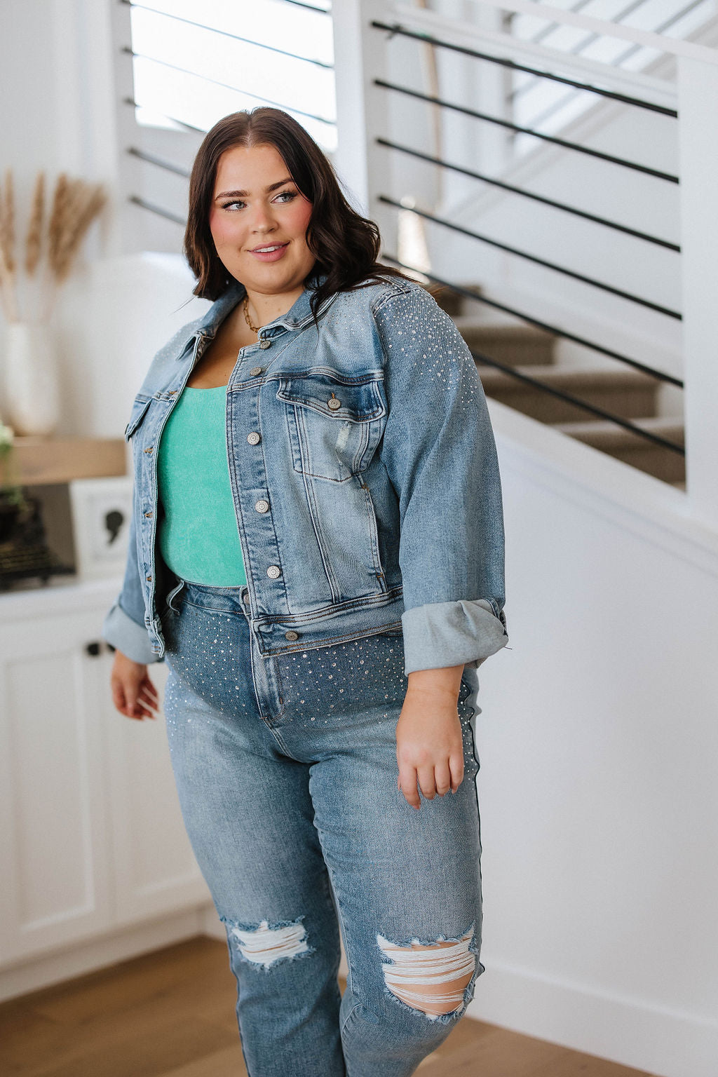 - Reese Rhinestone Denim Jacket