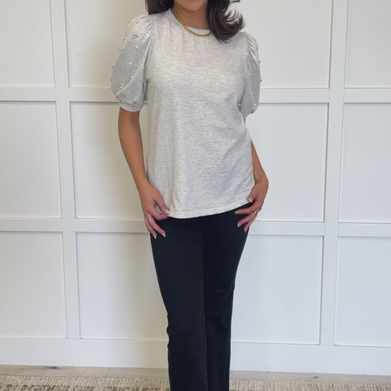 Diamonds and Pearls Puff Sleeve Top in Light Grey
