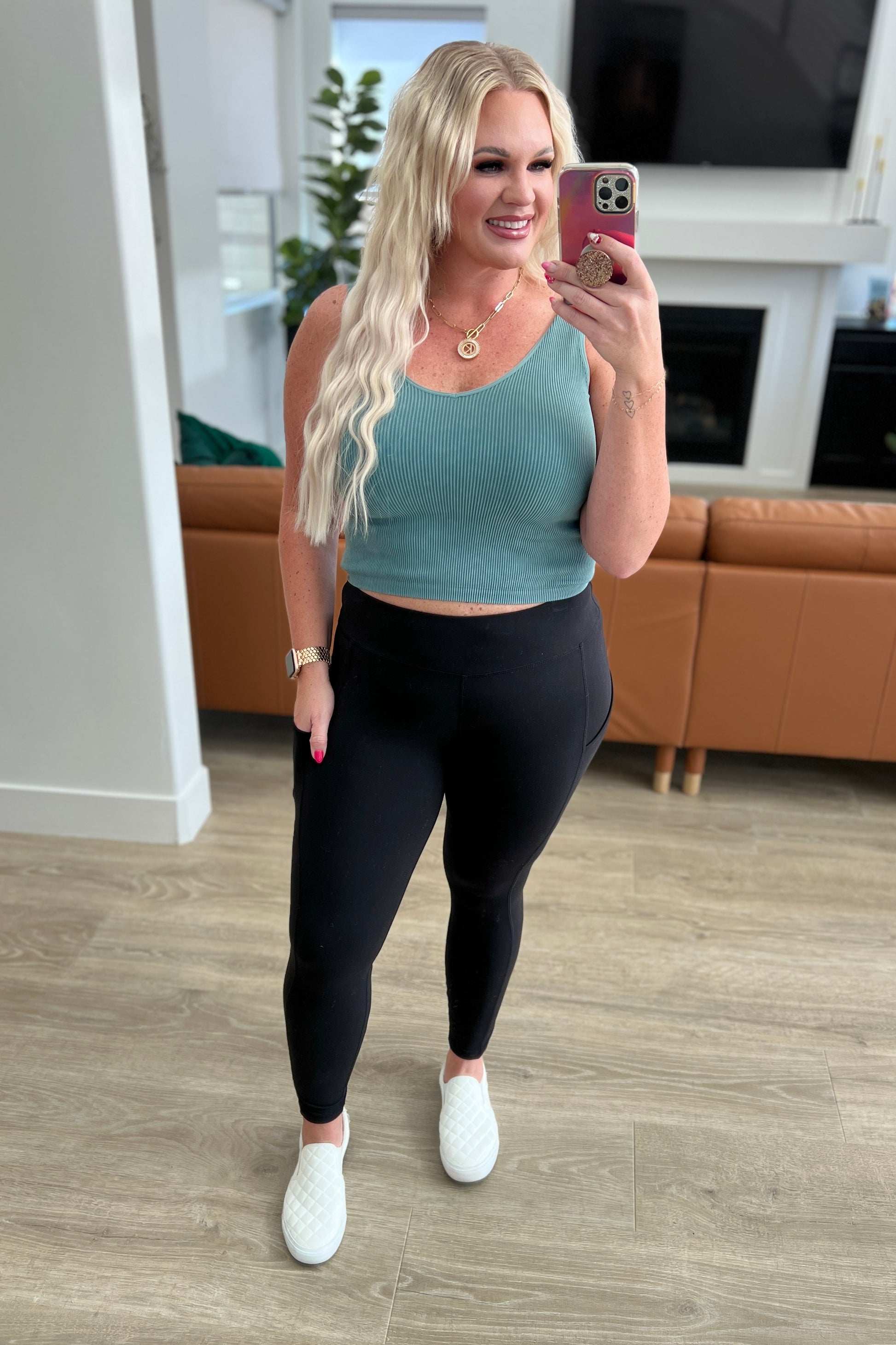 Keep it movin' and groovin' in style with the Keep It Moving Leggings! Complete with a high waist to emphasize support and comfort, side pockets to hold the essentials, and a skinny ankle length silhouette for the perfect coverage and fit. The fun seam detail is just another reason why we love these timeless leggings. Pair with a sports bra and your fav sneakers for a cute and classic look.