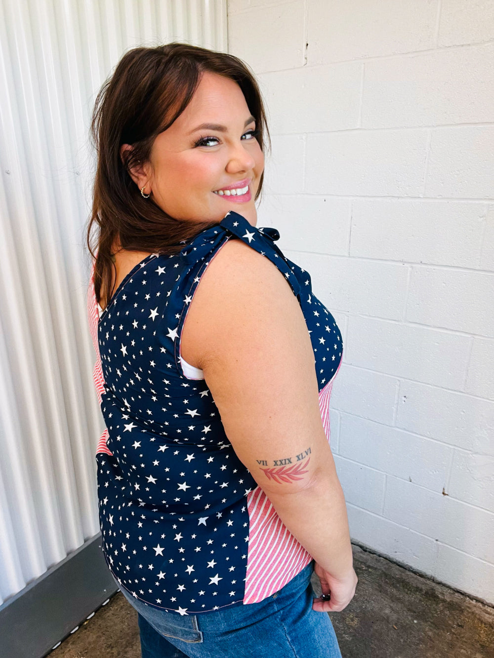 Stars & Stripes V Neck Shoulder Tie Detail Top