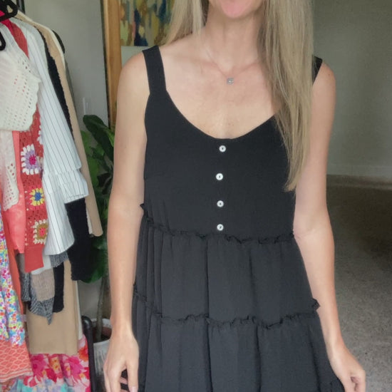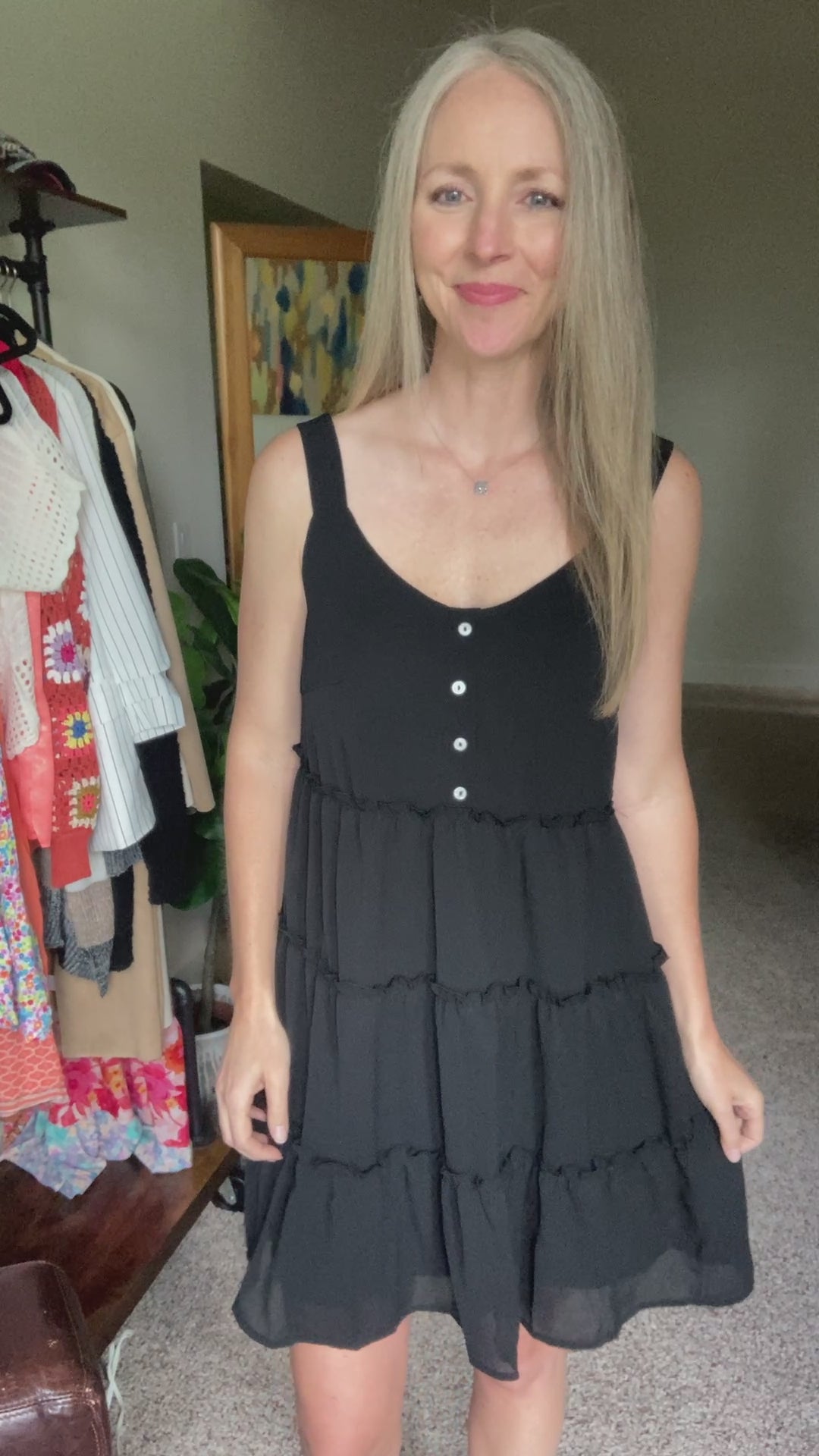 - Features: Wide tank straps, Faux Henley buttons, Tiered, Fully lined