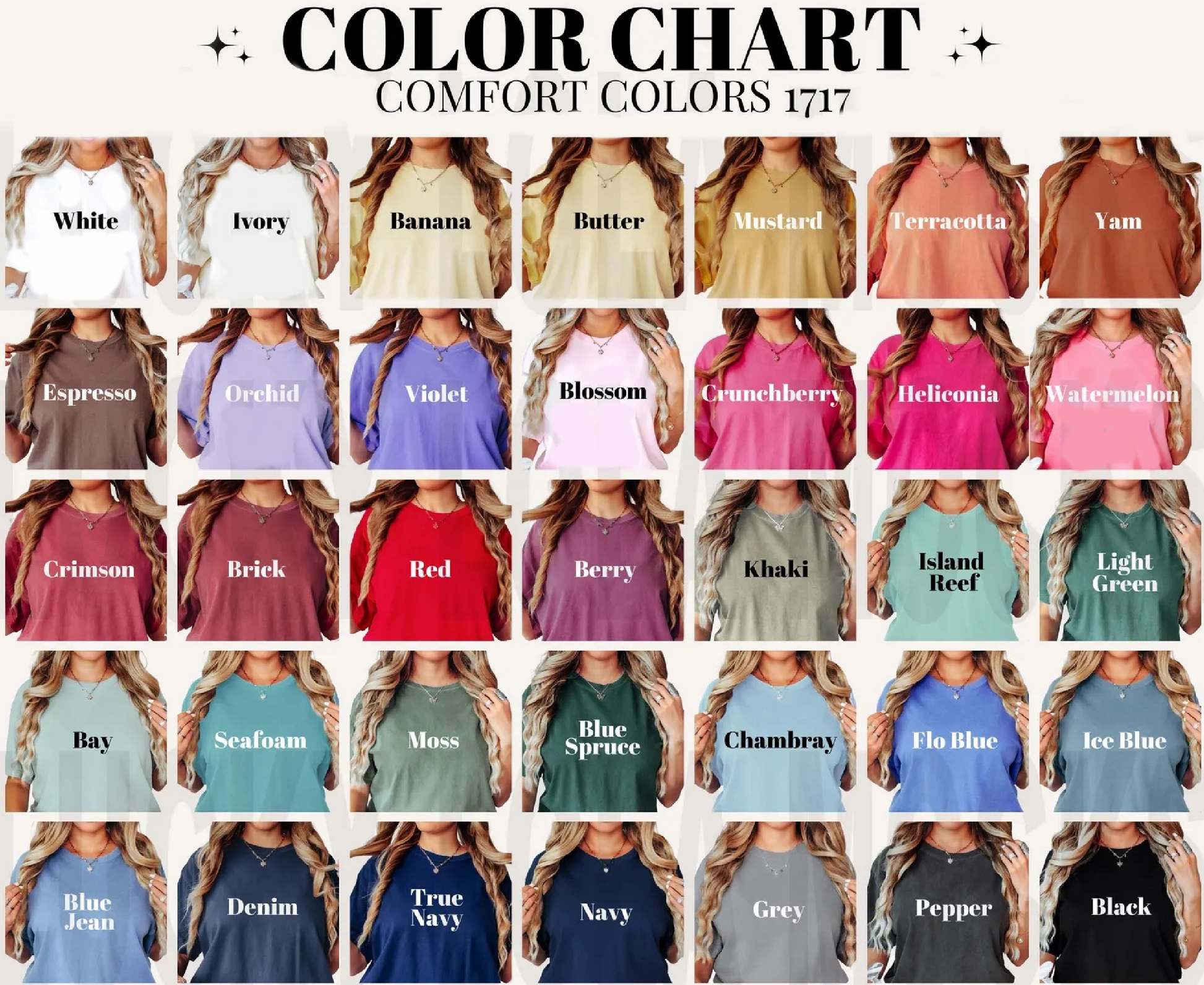 - Comfort Color tees are unisex sizing. True to size gives a semi-relaxed fit. Size up if you like an oversized fit.